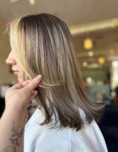 This service focuses on creating dimension along the face frame and refreshing existing highlights along the hair’s part line. It is also a great way to try something new that doesn’t require any upkeep.